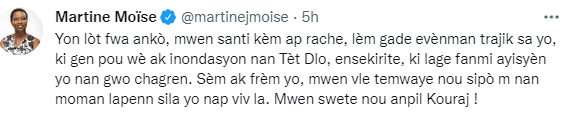 Martine Moïse a exprimé son support en ces moments de peine. « Je vous souhaite du courage », peut-on lire dans le tweet.