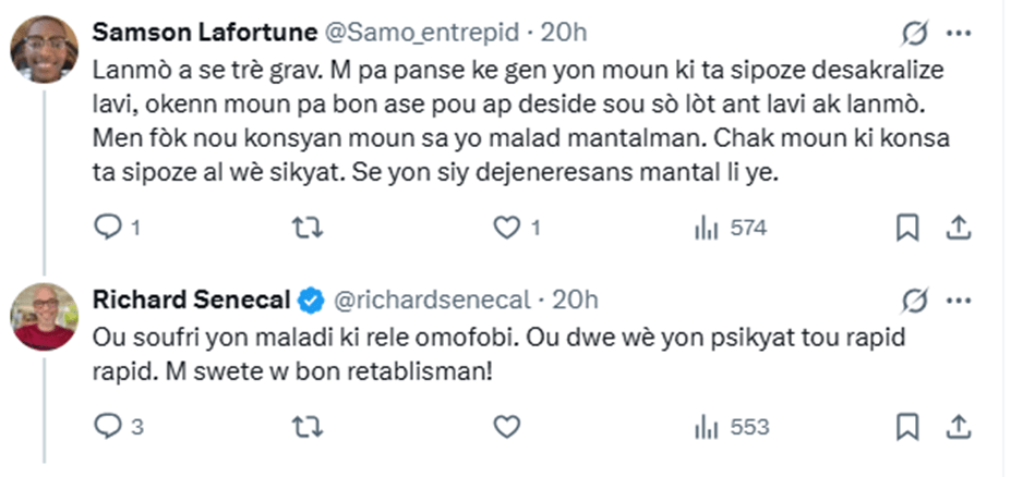 Sa sortie n’est pas passée inaperçue. De nombreux internautes ont réagi avec hostilité, l’accusant de vouloir normaliser ce qu’ils considèrent comme une perversion. En réponse, Senecal a maintenu sa position, affirmant que l’homosexualité n’est pas un crime et que ceux qui refusent de l’accepter devraient consulter un psychiatre. Une déclaration qui a été perçue par plusieurs comme une provocation, voire un mépris pour la culture haïtienne.